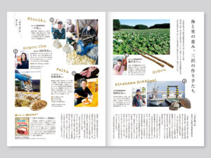 青森県三沢市の特産品を取り上げた本誌記事を抜き刷りし、「rakra特別号」としてパンフレットを作成しました。ゴボウやほっき貝など生産者自慢の食材と、フレンチシェフ・伊藤勝康さん監修のレシピを掲載。地産食材に広く親しんでいただけるよう、家庭でも気軽に作れる料理を多数紹介しています。
