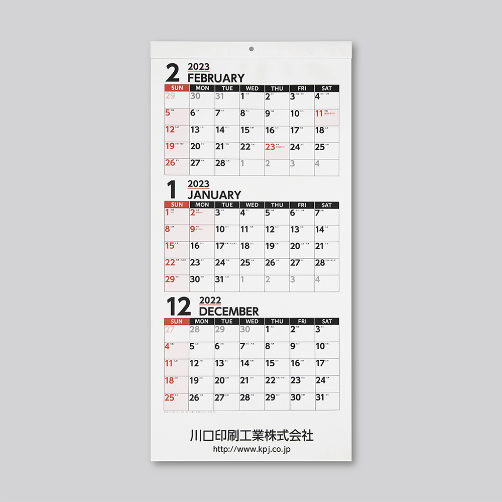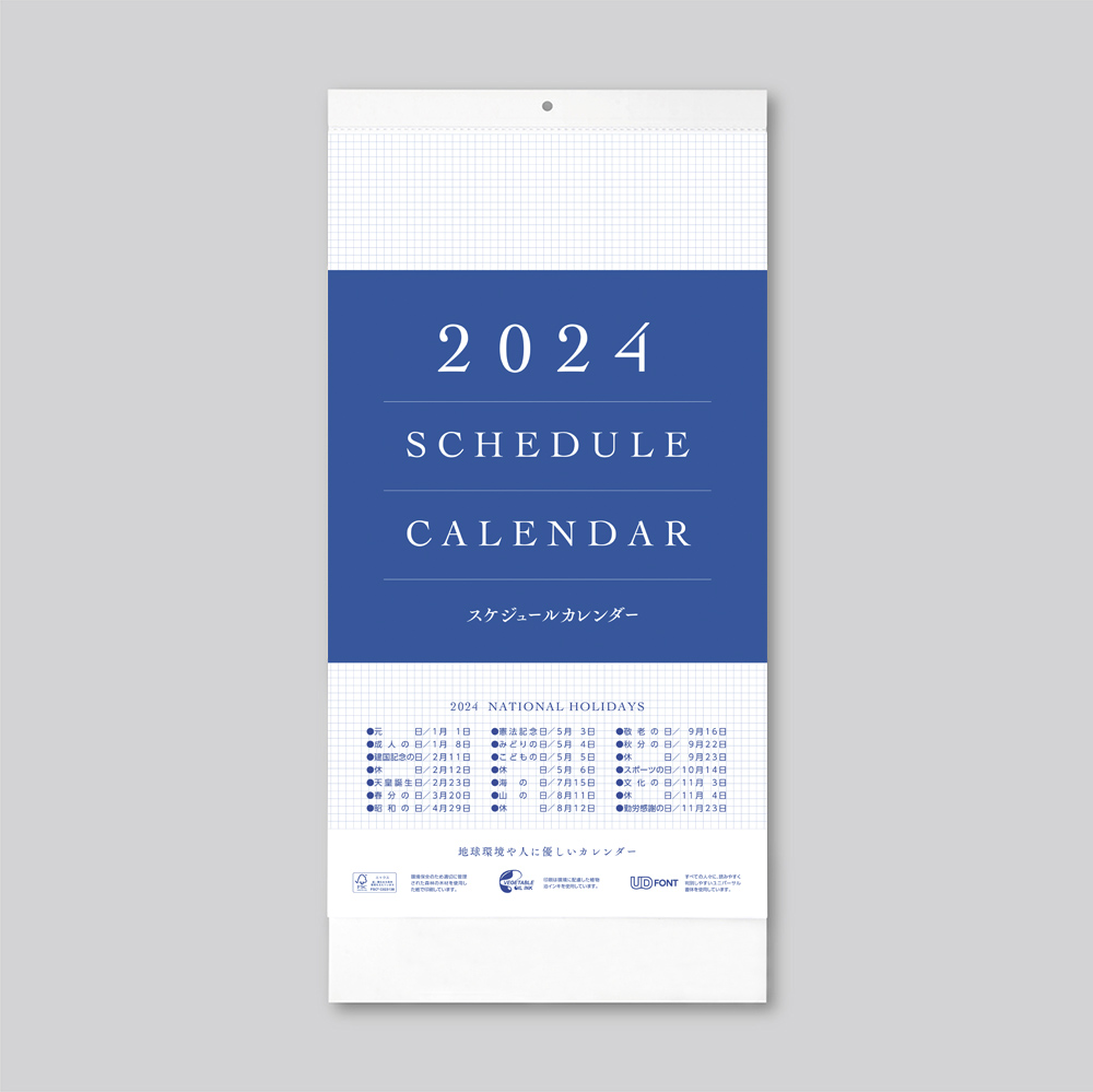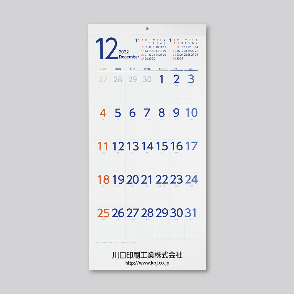 川口印刷のオリジナル製品「名入れカレンダー」は、文字が大きく、色がくっきり、使いやすくて機能的。すべての人々に、読みやすく判別しやすいユニバーサル書体を使用するなど、メディア・ユニバーサルデザインの手法を取り入れました。環境保全のため適切に管理された森林の木材を使用した紙を使い、環境に配慮した植物油インキを使用して印刷。地球環境にも、人にも優しいカレンダーです。