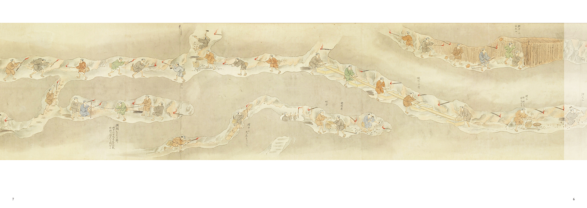 岩手県大槌町の金沢金山を描いた12メートルの絵巻を中心とした企画展「金山を開発せよ−「大槌金沢金山之図」制作に迫る−」の図録です。絵巻には、金の採掘から製錬に至るまでの一連の作業が詳細に描かれており、江戸時代の鉱山技術や金山で生き生きと働く人々の様子を知ることができる貴重な資料です。